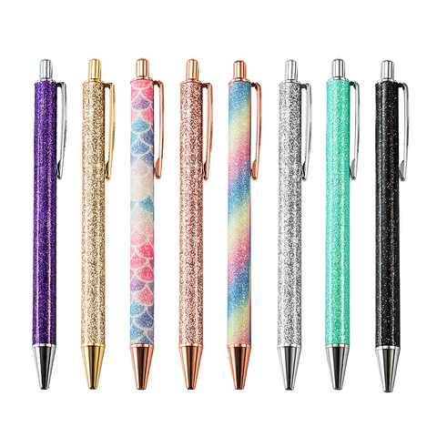 Bolígrafos de Metal retráctiles, bonitos bolígrafos personalizados con logotipo para la escuela, color rosa, purpurina, tinta negra y oro rosa